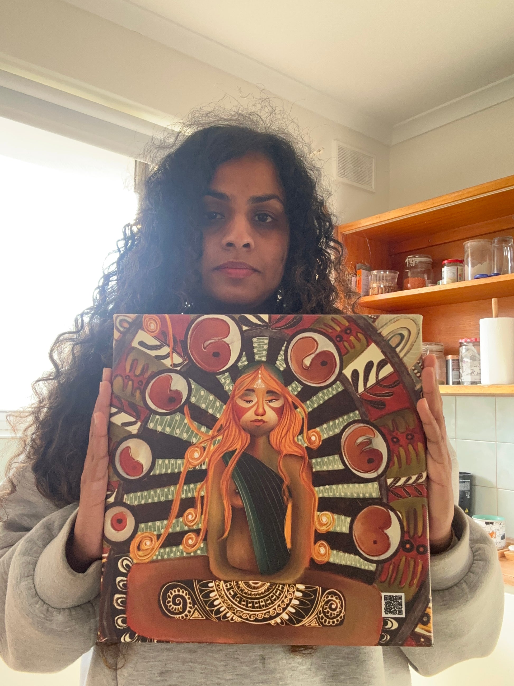 - Stretched canvas, wrapped around a wooden frame
