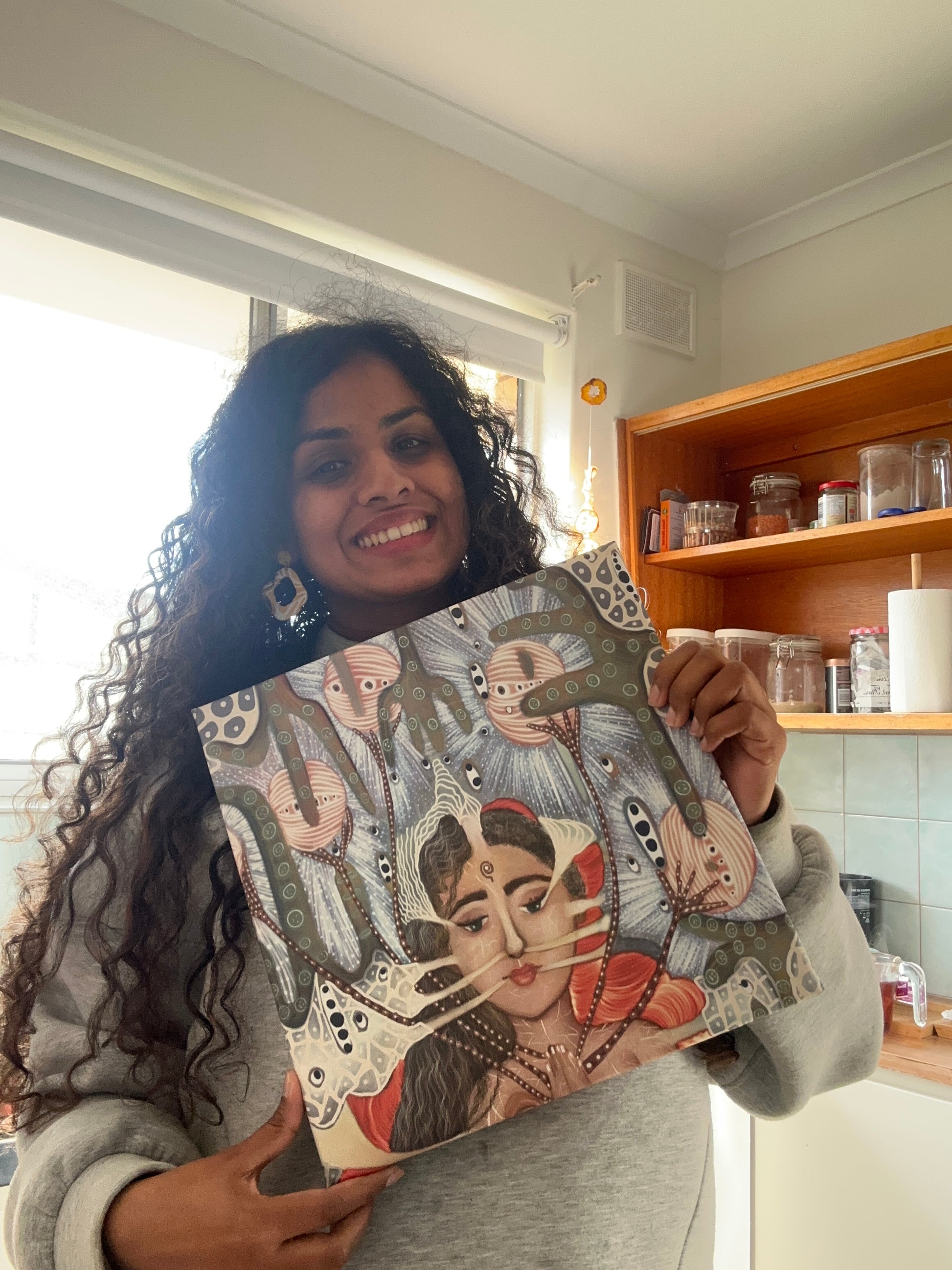 - Stretched canvas, wrapped around a wooden frame
